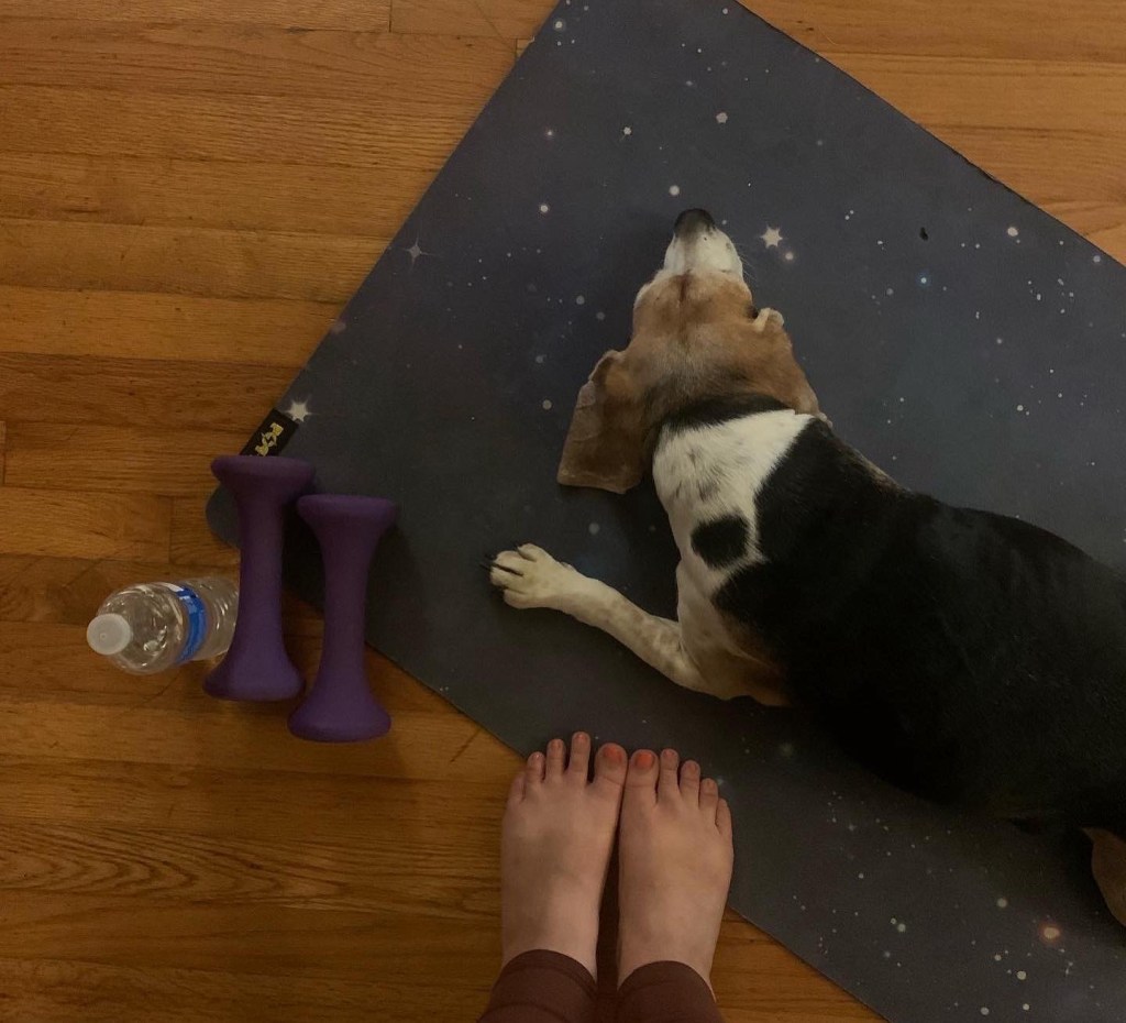 I’m constantly bumping into the little pieces of you and memories you left behind. Last night, I finally rolled out my yoga mat, the one that was your favorite, and there were tiny Bentley-hairs all over it. Bittersweet. You’re still making me smile. It’s lonely on the mat now, though, and in my bed and in the kitchen and on the bath mat when I get out of the shower and on the deck and in my car (front seat will always be yours) and everywhere. You were always, always with me.