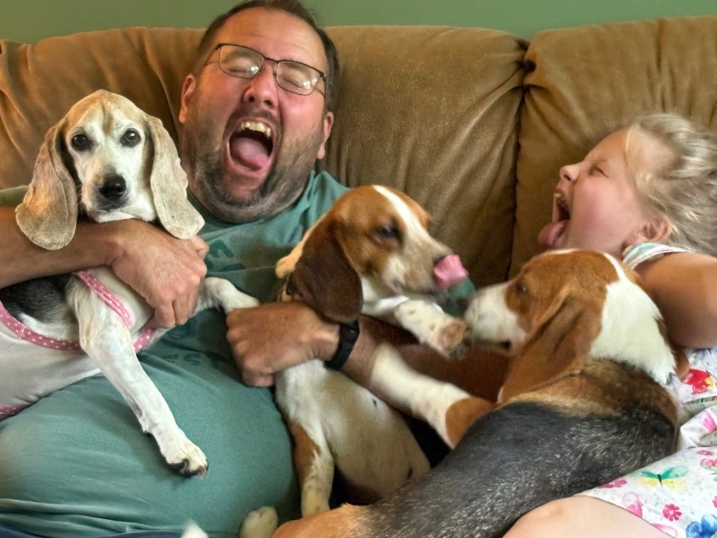 You were there, with your lemon and white mama beagle and your tri-colored sister, backed in a corner of pine shavings. Characteristic of you, stubbornly, you wouldn’t budge from that corner. Unreachable. But you’d already reached my heart and burrowed way down deep. A few moments later, you were in my arms, and we’ve been nearly inseparable since.
