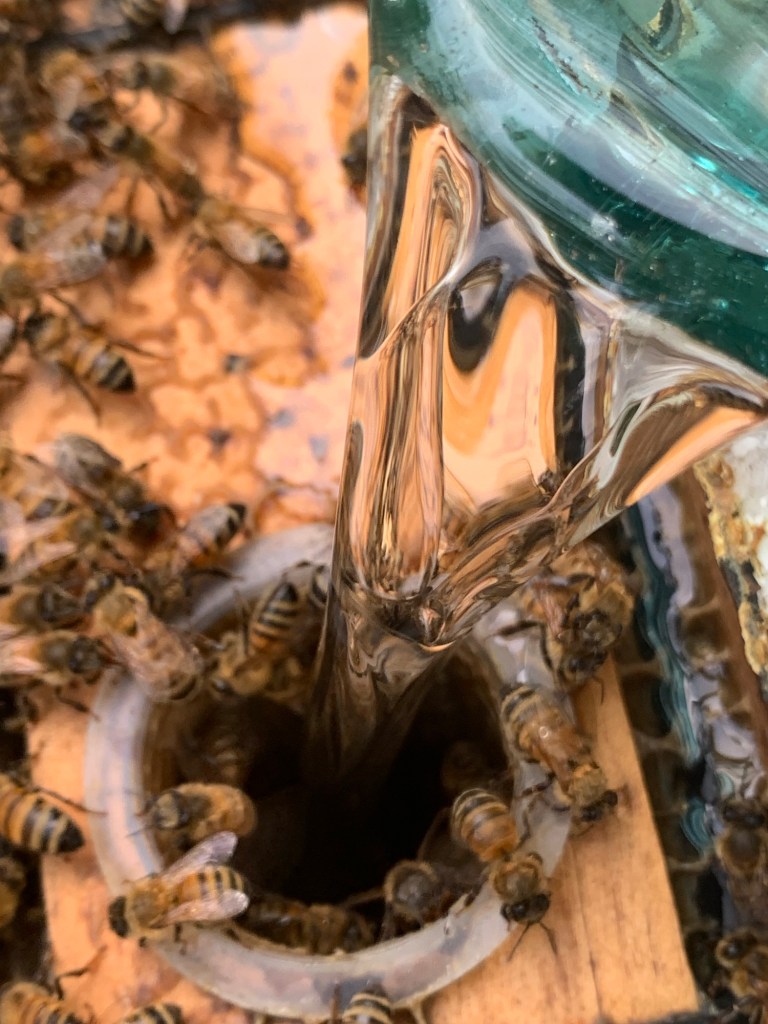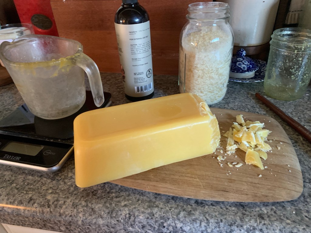 After honey harvest a few weeks ago, I made a solar wax melter out of items I found at home. And my scrappy contraption worked brilliantly! The black, broken wax, melted (changed form) by the sun, filtered through cheesecloth, and hardened into pure, golden wax. One of the most vital uses for rendered wax is using it directly in the hive. I paint melted wax on frame foundation to give the bees a boost when they’re drawing comb. This stimulates their natural production (see any life application parallels here?). Other neat purposes for beeswax are candlemaking, cosmetics, furniture polish, encaustic painting, food storage wraps, and many others.