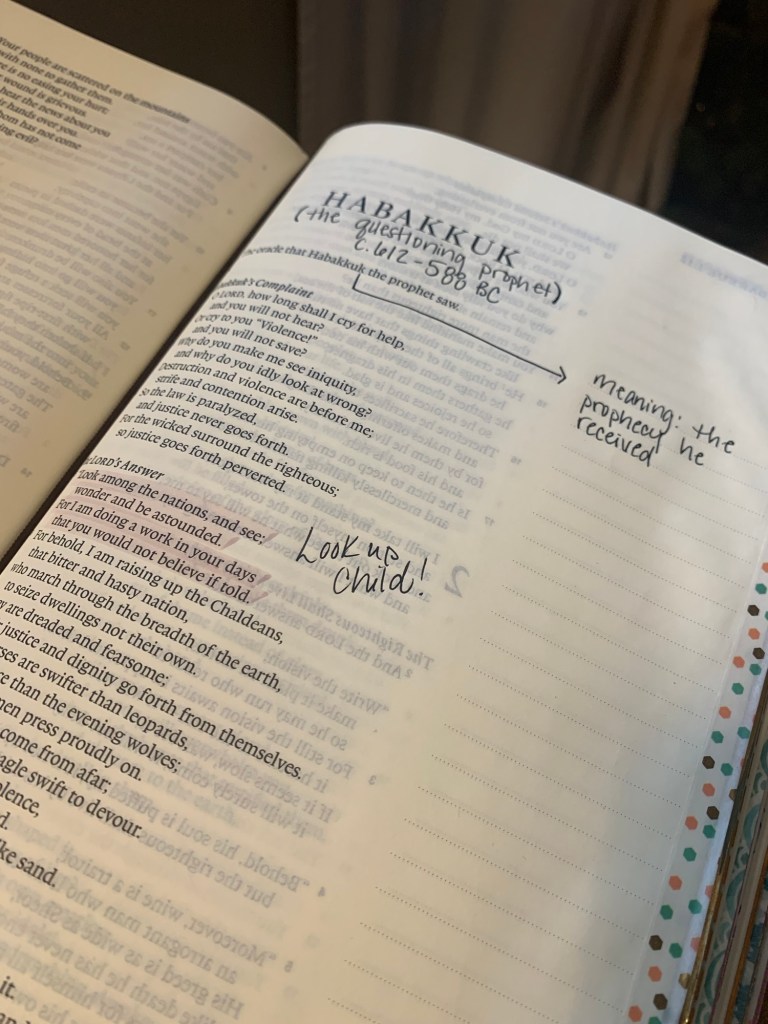 The reason I chose to start my Bible reading and journaling in Habakkuk this year is because I was so fascinated by the text my pastor, Pastor CJ Johnson, used from Habakkuk in his New Year sermon. I imagine you’re wondering like I was, “why, why, why would one use Habakkuk as a New Year sermon outline?” But Pastor’s message was beautiful perfection. Read on.