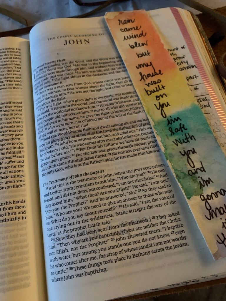 Goff suggests that we aren’t all given a firm foundation. We don’t all have ready-rocks to build on. Perhaps we were born into poverty. Maybe our spouse walked out, leaving us with nothing but five kids and no job. But the beautiful thing is this: God already thought of that too! He designed a perfect plan for that—Himself. He offered Himself to be our Rock, our foundation! What? Read that again. Slowly. Now read it once again, even more slowly this time. No matter what shaky, uncertain, shifting, unsteady, crumbling foundation we have, we can choose to build our lives on Him. He’s steady, solid, firm, unmoving, sturdy, and unshakable. He gave Himself. As a gift. There’s no earning, no striving, just grace. All grace. All we have to do is choose to build on Him, our Rock. Then when those devastating floods of overwhelm threaten to shake our lives, we can rest—REST—assured that we are held firm, unshakeable and safe.