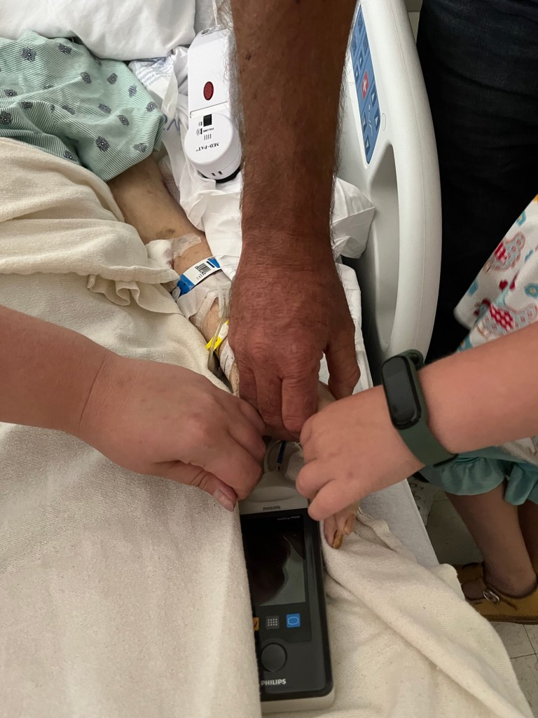 We’d just stepped from the chilly ICU, past the detailed nativity (minus a baby Jesus), and into a frosty, December 5th sunrise. Sun was just peeking above the horizon, but those rays shone pillars of hope. Someone handed me a plastic cup of orange juice that felt like glory in a cup, a little bit of life.