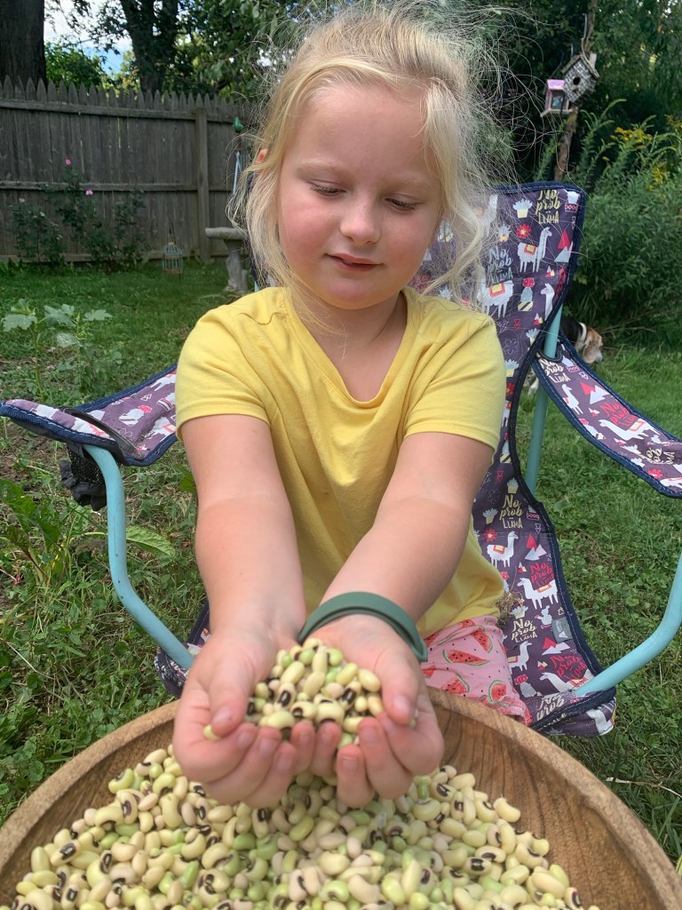 Just about this time last year, as the shadows were lengthening and harvest-end was nearing, I video called my Grandpa to let Lily update him on our pea shelling. If you’re from the Deep South, you know there’s nothing like pink eye purple hull peas with cornbread (no sugar added, thank you). Living in the Midwest now, I couldn’t find pink eye purple hull pea seeds locally, so a few years ago, Paw-Paw mailed me a whole bunch of seeds.
